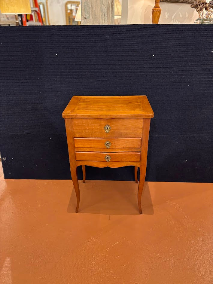 This French fruitwood dressing table from circa 1850 exudes quiet elegance with graceful curves, delicate cabriole legs, and a warm patina. A beautiful piece for bedrooms or dressing areas, rich with antique character.