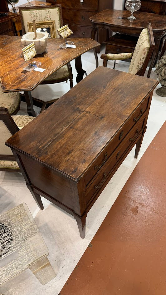 French Walnut Louis XVI Sauteuse with Two Drawers, Square Tapered Legs, and Classic Bronze Drop Pulls Circa 1790