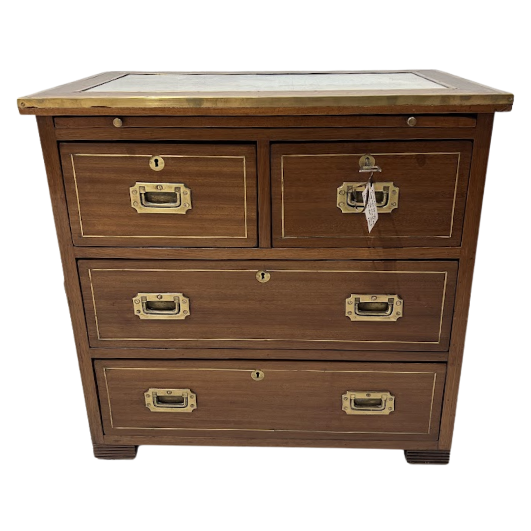 Vintage English Ship Captain's Campaign Chest with Removable Pull Out Slide and Chart Under Glass (TLI251)